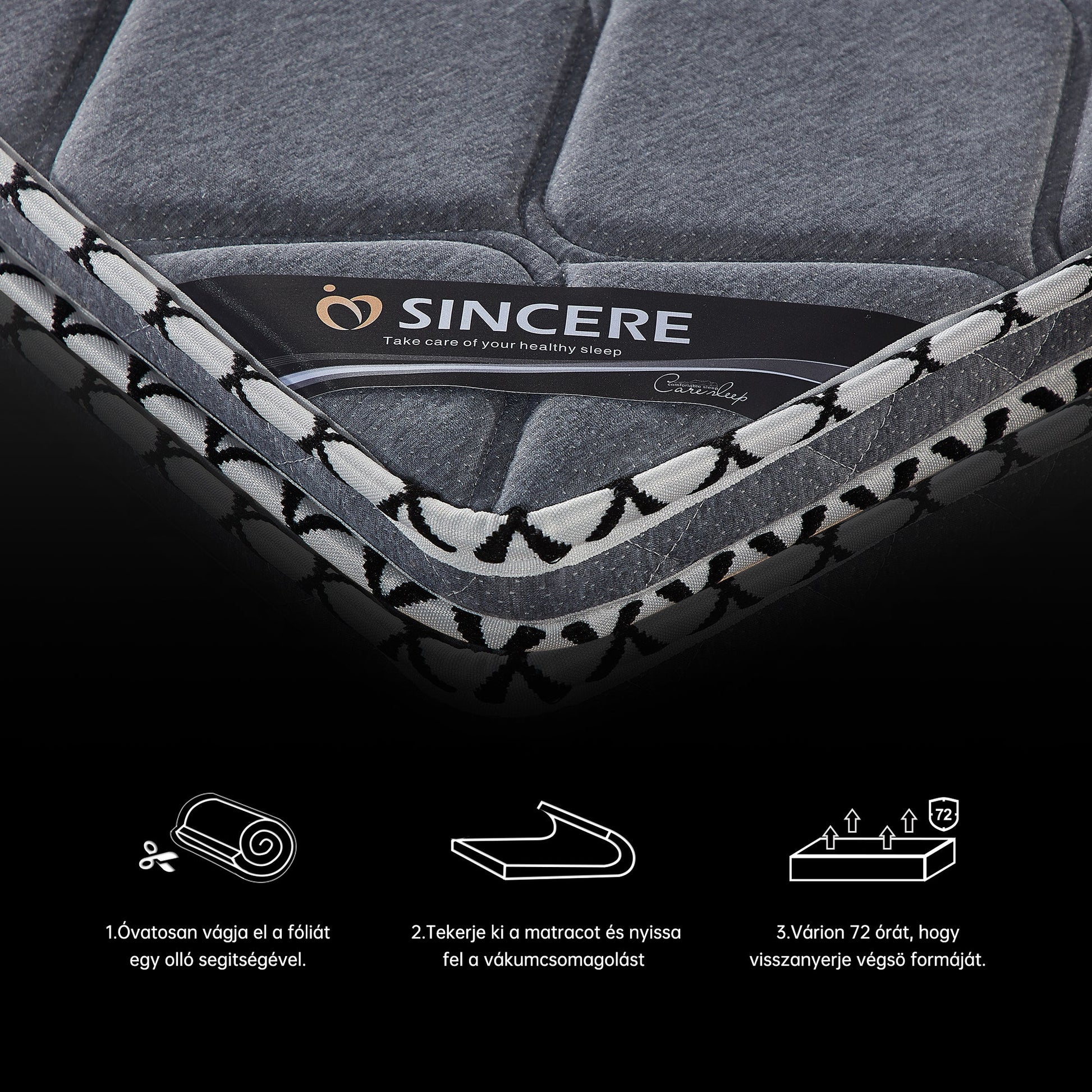 A matrac felszíne gyémántmintás steppeléssel van ellátva, amely javítja a légáteresztő képességet, növeli a szerkezeti stabilitást és hozzájárul a kényelmes alváshoz.